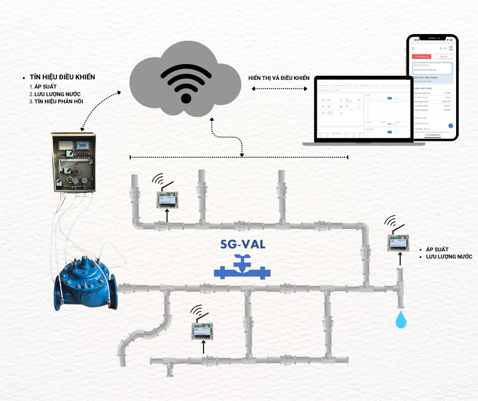 Ứng dụng IoT vào Công ty TNHH SÀI GÒN VALVE cho ra mắt dòng van giảm áp đa hằng số ứng dụng công nghệ vào quá trình theo dõi và điều khiển van giảm áp từ xa, giúp hỗ trợ người dùng thuận tiện hơn trong quá trình giám sát. Van giảm áp đa hằng số là sự kết hợp giữa van giảm áp, tủ điều khiển và các logger nhằm thu thập lưu lượng và áp suất trong hệ thống đường ống để báo về thiết bị di động. Người dùng sẽ theo dõi thông qua web được SÀI GÒN VALVE phát triển.
